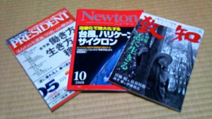 ちなみに、ワタクシの大好きな本のをピックアップさしてもらうと、「経営、お金、社会などが書いてあるプレジデント」「理系の最新技術や過去の情報などのニュートン」「今回初めて読みベタ惚れした生きる道しるべ的な人間学の致知(ちち)」