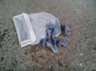 」っと、ため息をつき仕方がなく洗濯機にいれ洗剤の代わりに苛性ソーダを入れスタートさせた。・・・一時間ぐらい過ぎたころか、かみさんが出てきて、「ジーパンになんか紙かメモでも入れてた?カスがいっぱい出てるよ」っと、言われ「何か入れとったかな?」と思った0.5秒後、「あ‘あ‘あーーーーっ」そう、配達の時に頂いた二千円をポケットにいれてたのだ。
