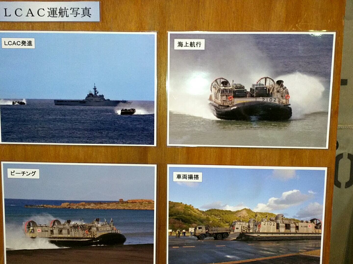 すごくわかりにくいが、自衛隊用ホバークラフトが2機積んである。日本で6機しかないという