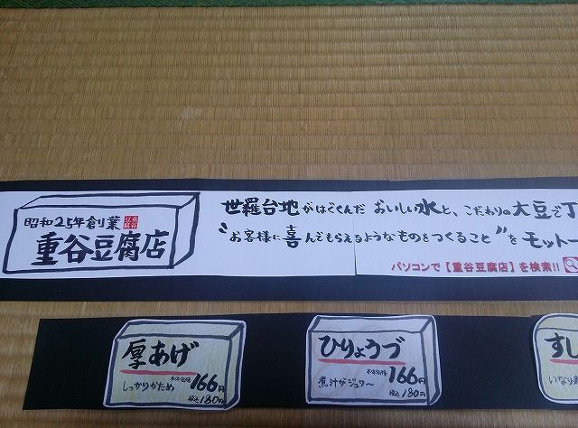 そして、食品売り場にいきいき村コーナーがあり、野菜や漬物、もちろん「重谷の豆腐」が置けることになりました。立派なショーケースでうれしいです。