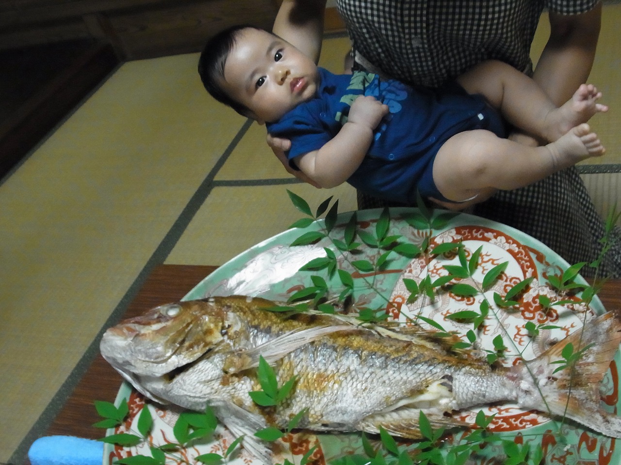 特に、特大の鯛は圧巻でした。長さ70cmもある鯛を錬志と比べると、いい勝負!!